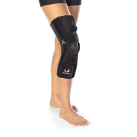 Tibiofemoral: OA Spiral bruker et trepunkts korrigeringssystem og en ikke-elastisk stropp for å trekke kneet ut av varus(Hjulbent) eller valgus(kalvbent) og redusere smerte.